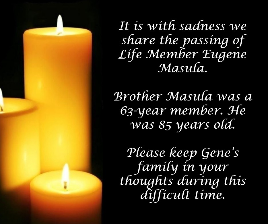 It is with great sadness we share the passing of Life Member Eugene Masula.